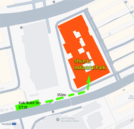 We are located at Shun Li Industrial Park which is next to the new Kaki Bukit Station along Downtown Line.